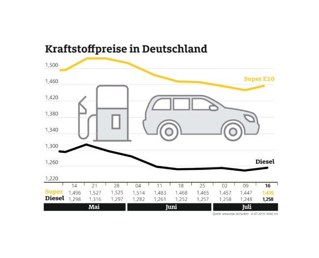 München (ots) Nach Wochen fallender Benzin- und Dieselpreise wird Tanken wieder teurer. Laut aktueller Auswertung des ADAC kostet ein Liter Super E10 im Bundesdurchschnitt 1,459 Euro, das sind 1,2 Cent mehr als in der Vorwoche. Diesel verteuerte sich um 1,0 Cent auf 1,258 Euro je Liter. Hauptgrund dürften die gestiegenen Rohölnotierungen sein. Für ein Barrel der…