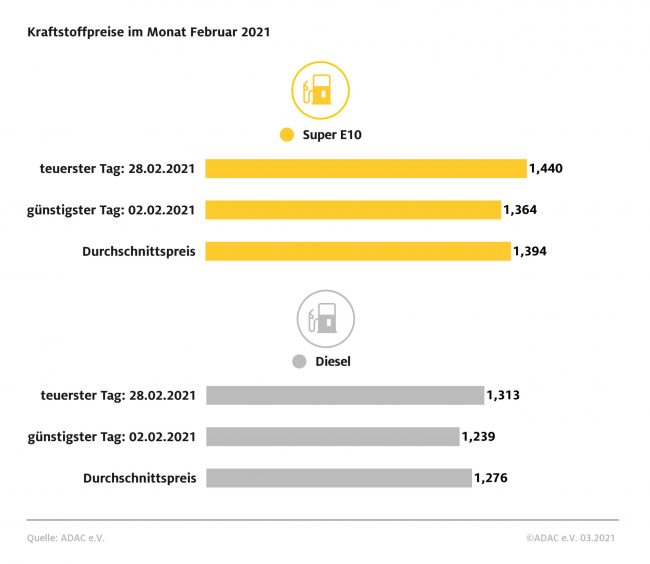 München (ots) Beide Kraftstoffsorten um 4,3 Cent je Liter teurer als im Januar Der Preisanstieg an den deutschen Tankstellen hat sich im Februar fortgesetzt. Sowohl Benzin als auch Diesel verteuerten sich im Mittel im Vergleich zum Januar um jeweils 4,3 Cent je Liter. Dies zeigt die monatliche ADAC Auswertung der Kraftstoffpreise. Danach mussten die Fahrer von…