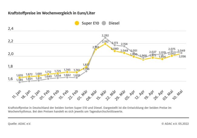München (ots) – Der Benzinpreis ist binnen einer Woche kräftig gestiegen. Im bundesweiten Mittel müssen die Autofahrer derzeit für einen Liter Super E10 2,036 Euro bezahlen. Das ist ein Plus gegenüber der Vorwoche von 3,4 Cent. Dies zeigt die aktuelle ADAC Auswertung der Kraftstoffpreise. Diesel ist hingegen günstiger: Ein Liter kostet im Schnitt 2,049 Euro und…