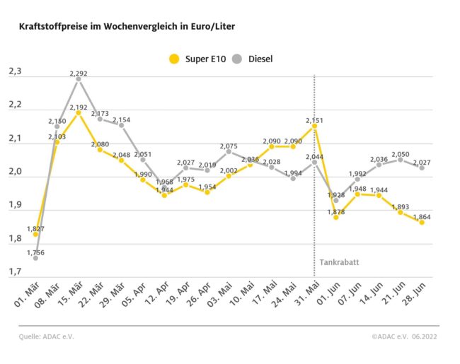 München (ots) – Die Kraftstoffpreise in Deutschland sind im Vergleich zur vergangenen Woche gesunken. Wie die aktuelle ADAC Auswertung der Kraftstoffpreise zeigt, kostet ein Liter Super E10 derzeit im bundesweiten Mittel 1,864 Euro, das sind 2,9 Cent weniger als vor Wochenfrist. Der Preis für Diesel ist um 2,3 Cent niedriger und liegt aktuell bei 2,027…