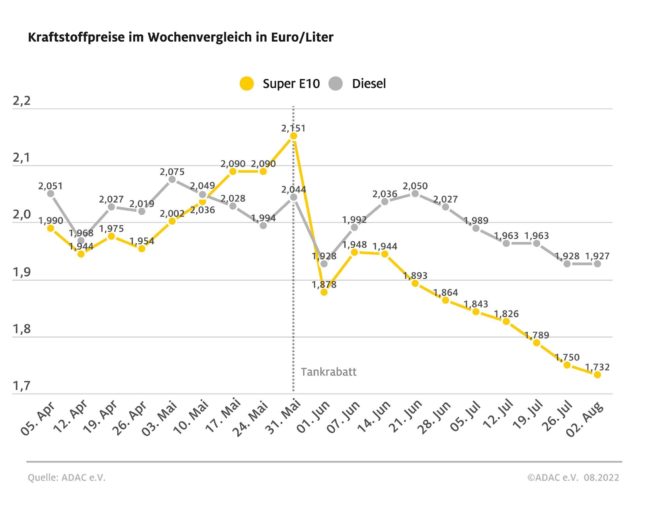 München (ots) – Leichte Entspannung bei Benzin, praktisch keine Änderung bei Diesel – die Kraftstoffpreise in Deutschland haben sich im Vergleich zur Vorwoche nur wenig bewegt. Für einen Liter Super E10 müssen die Autofahrer derzeit im bundesweiten Mittel 1,732 Euro bezahlen und damit 1,8 Cent weniger als in der Vorwoche. Dies zeigt die aktuelle ADAC Auswertung…