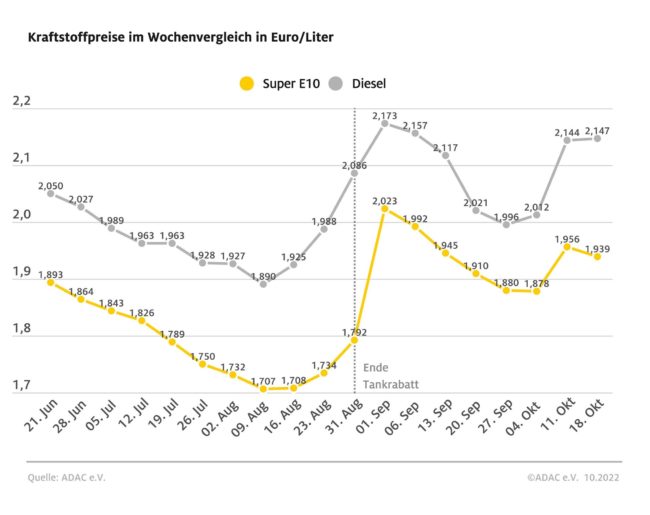 Diesel fast 21 Cent teurer als Super E10 – Benzinpreis sinkt um knapp zwei Cent – Diesel steigt leicht – Öl um vier US-Dollar günstiger