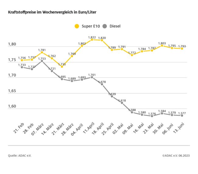 München (ots) – Die Preise an den Zapfsäulen in Deutschland sind im Vergleich zur vergangenen Woche leicht gesunken. Laut aktueller ADAC Auswertung der Kraftstoffpreise kostet ein Liter Super E10 im bundesweiten Mittel 1,793 Euro, das sind 0,2 Cent weniger als in der Vorwoche. Diesel ist ebenfalls um 0,2 Cent billiger und kostet aktuell 1,577 Euro. …
