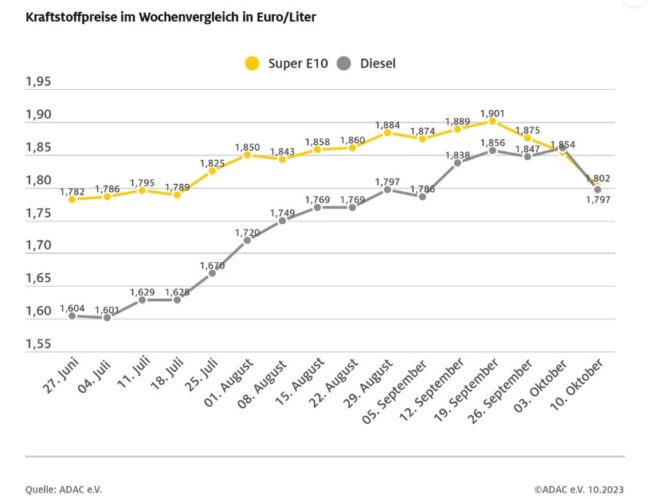 München (ots) Tanken ist im Verlauf der letzten Woche ein ganzes Stück billiger geworden. Für einen Liter Diesel müssen die Autofahrerinnen und Autofahrer derzeit im bundesweiten Mittel 1,797 Euro bezahlen und damit 6,3 Cent weniger als vor einer Woche. Das ergibt die aktuelle ADAC Auswertung der Kraftstoffpreise in Deutschland. Auch der Benzinpreis ist deutlich gesunken und…