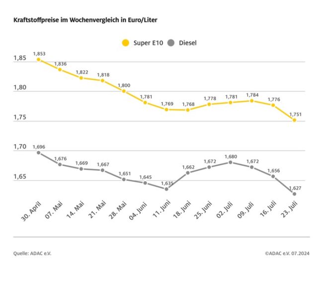 München (ots): Die Kraftstoffpreise an den deutschen Tankstellen sind innerhalb einer Woche deutlich gesunken – das zeigt die aktuelle ADAC Auswertung der Kraftstoffpreise an den bundesweit mehr als 14.000 Tankstellen. Der Preis für einen Liter Super E10 ist danach um 2,5 Cent zurückgegangen und rangiert aktuell im bundesweiten Schnitt bei 1,751 Euro. Noch etwas stärker…