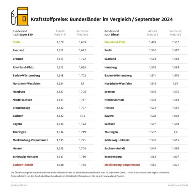 Benzin in Berlin mit Abstand am billigsten – Rheinland-Pfalz mit den niedrigsten Dieselpreisen