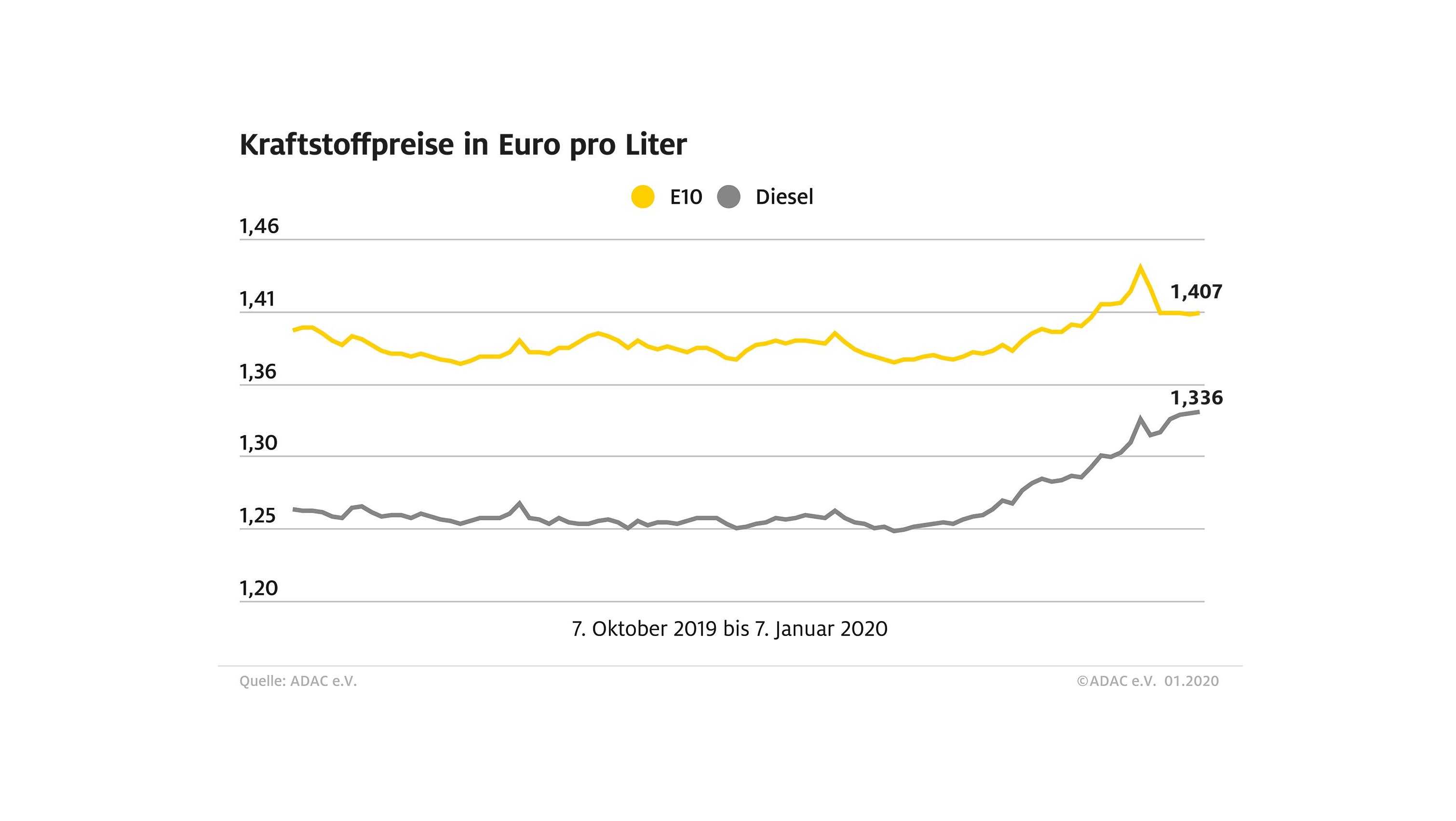 Der sich zuspitzende Konflikt am Persischen Golf verstärkt den Preisanstieg bei Rohöl, der bereits seit Anfang Oktober 2019 anhält, und erhöht somit auch die Kraftstoffpreise an den Tankstellen. Ein Barrel Rohöl der Sorte Brent kostet aktuell gut 68 Dollar und damit rund zehn Dollar mehr als Anfang Oktober 2019.