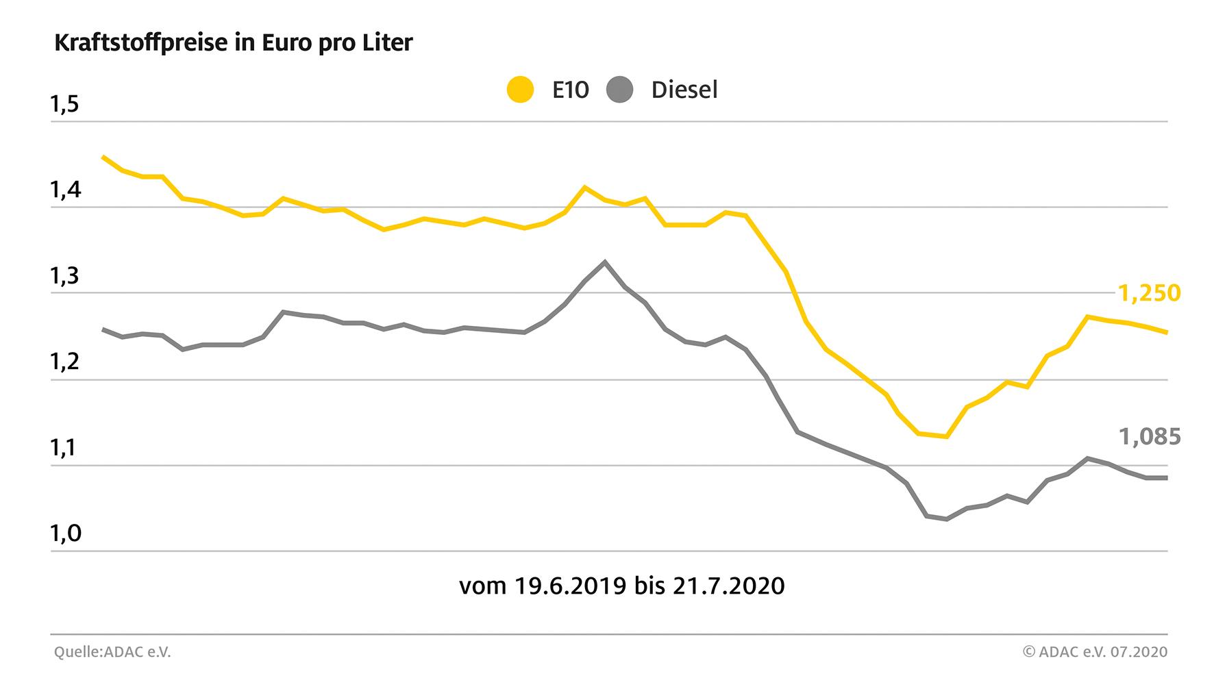 Einen großen Einfluss auf die Entwicklung der Kraftstoffpreise hat der Rohölpreis. Ein Barrel der Sorte Brent-Öl kostet aktuell rund 44 Dollar und liegt damit auf einem ähnlich hohen Niveau wie in der vergangenen Woche. Gleichzeitig kletterte der Euro nach dem EU-Gipfel auf über 1,15 Dollar und erreichte den höchsten Stand des laufenden Jahres, was das in Dollar gehandelte Rohöl verbilligt.
