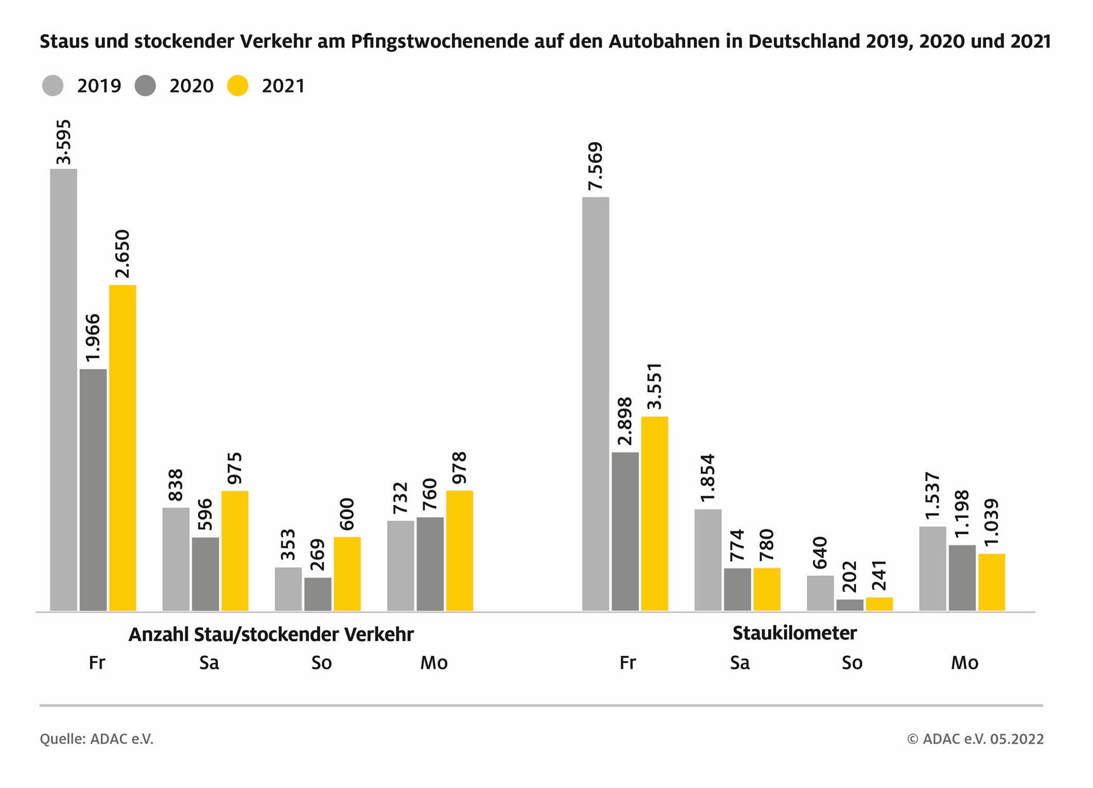ADAC Stauprognose: Staus rund um Pfingsten im 3-Jahres-Vergleich