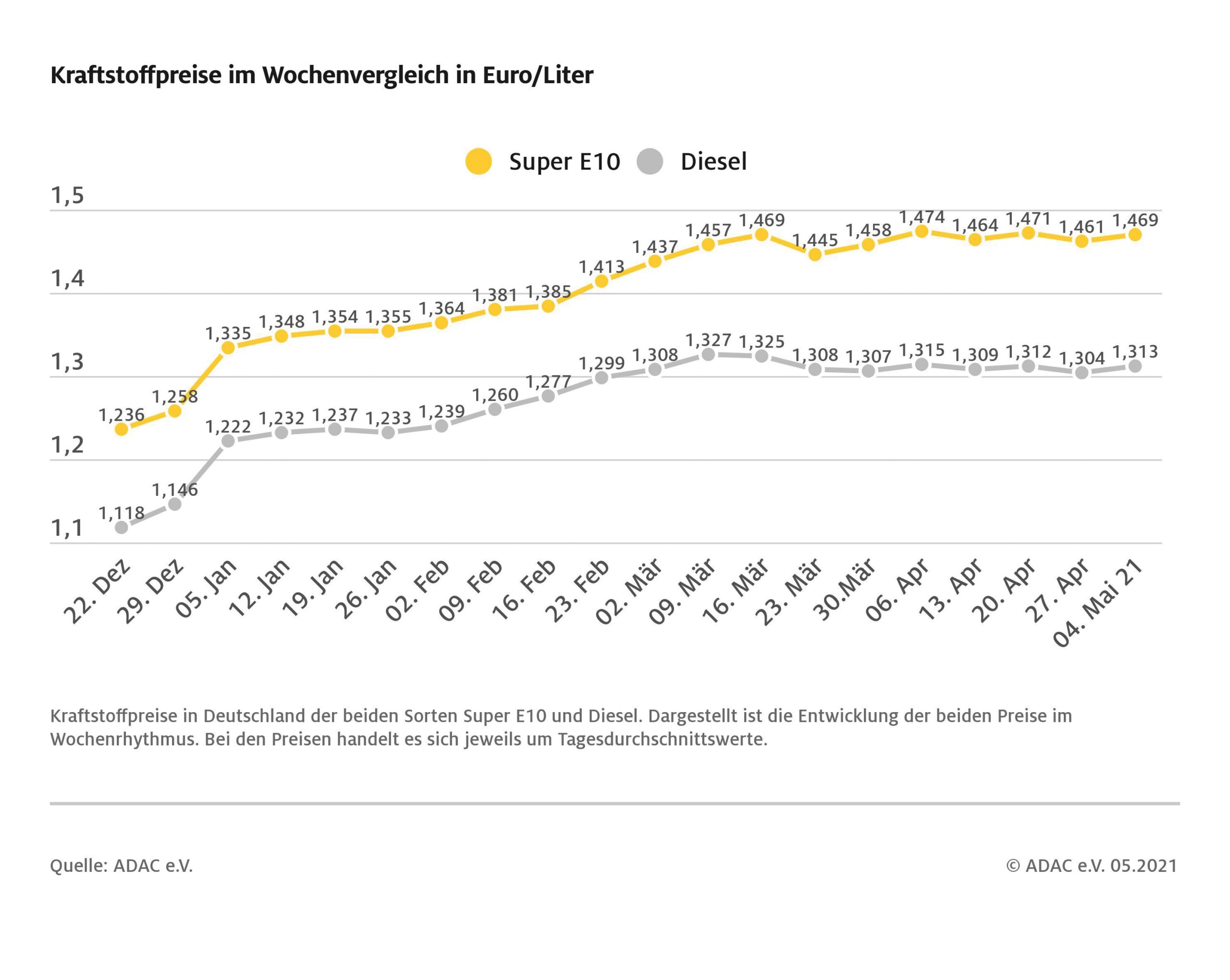 Kraftstoffpreise im Wochenvergleich Bildquelle: ADAC e.V.