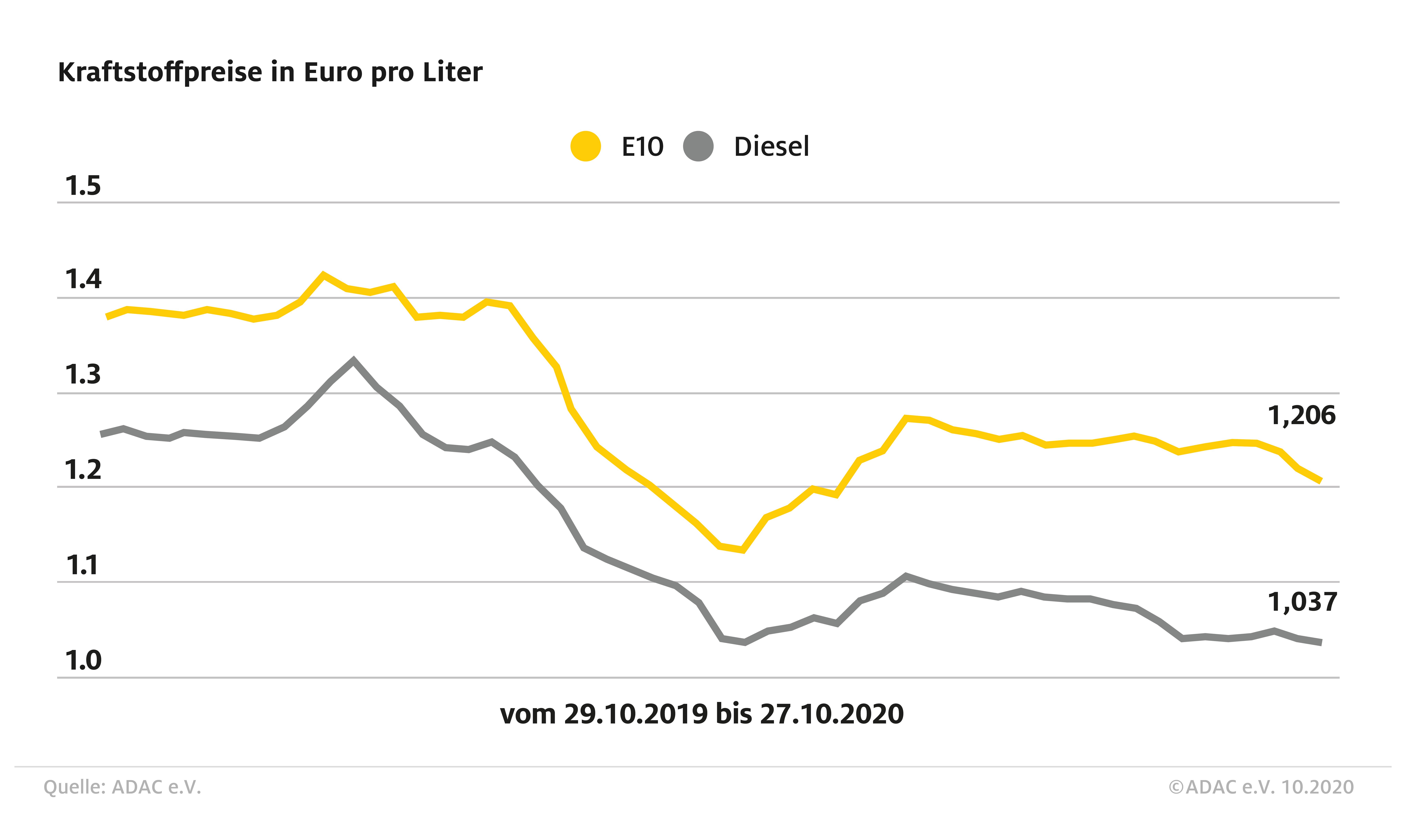 München (ots) – Die Kraftstoffpreise gehen im Bundesvergleich weiter zurück. Das ergibt die aktuelle Marktauswertung des ADAC. Demnach kostet ein Liter Super E10 derzeit im Schnitt 1,206 Euro. Dies entspricht einem Rückgang von 1,4 Cent im Vergleich zur Vorwoche.