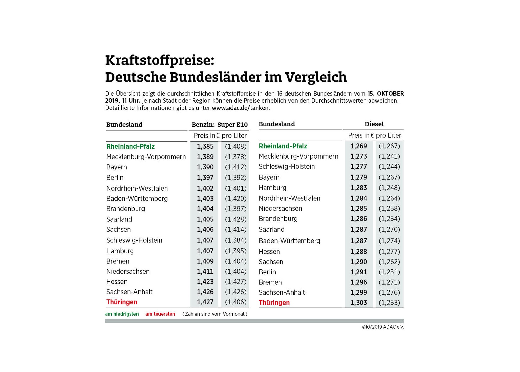 In der aktuellen Untersuchung hat der ADAC am heutigen Dienstag um 11 Uhr die Preisdaten von mehr als 14.000 bei der Markttransparenzstelle erfassten Tankstellen ausgewertet und den Bundesländern zugeordnet. Die ermittelten Preise stellen eine Momentaufnahme dar. Unkomplizierte und schnelle Hilfe für preisbewusste Autofahrer bietet die Smartphone-App „ADAC Spritpreise“. Ausführliche Informationen rund um den Kraftstoffmarkt gibt es zudem unter www.adac.de/tanken.