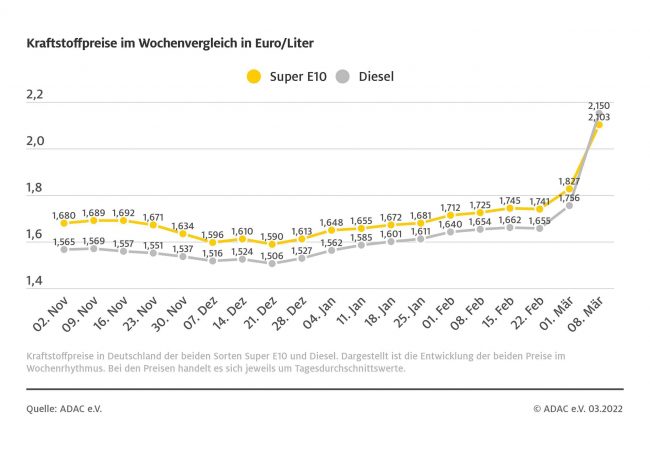 Die neue Woche bringt neue Preisanstiege. Während die durchschnittlichen Preise für Heizöl zwar immer noch unterhalb der Spitze vom 9. März liegen, bleiben sie im Mehrjahresvergleich auf extrem hohem Niveau. Auch heute werden die Inlandspreise von den internationalen Rohölpreisen vor sich her getrieben, die zum Wochenstart einen neuerlichen Sprung nach oben machen. Im Vergleich…